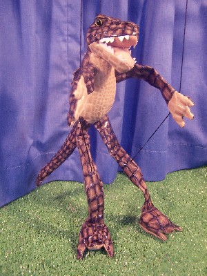 ALLIGATOR (WB3013) The American alligator, Alligator mississippiensis, resides primarily in the rivers and wetlands in the southeastern region of North Carolina, but can also be found as far north as the Albemarle Sound. Coastal North Carolina is the northern most range for the American alligator. Our Small Alligator String Puppet is about 13 inches tall (21 inches to control). |