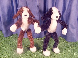 TWIN PUPPY PACK (WB3233) These two highly trained Small Marionette Dogs (they walk upright like humans) are about 15 inches tall (20 inches to the top of the control). They are available only in a package of 2 which includes1 brown and 1 black. |
