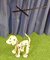 Small Dalmatian Marionette (WB341) Everyone knows the story of the 101 Dalmatians, right? This Small Dalmatian String Puppet looks just like one of them. You walk the puppy puppet by simply rocking the control from side to side. He is about 8 inches tall (with his control being about 16 inches off the floor). To do 101 Dalmatians as a puppet show, we suggest purchasing 33 of each (with that many puppets on stage at once no one is going to notice that two are missing). |