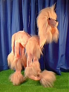 Small Afghan Marionette (WB381) Omar here, is an Afghan puppy complete with long furry ears and topknot. Unfortunately, what isn't complete is his "paper training." Good thing he's really an 8 inch tall string puppet with a really easy-to-work control and not prone to those "little puppy accidents." |