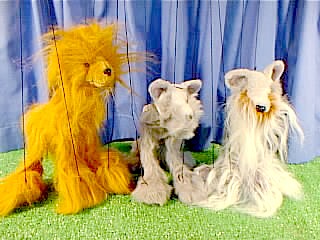 Pack of Puppies Speaking of "paper training" don't look for that feature here. These darling puppy marionettes are only 8 inches tall and must not be expected to behave like their adult counterparts. That said, meet Prada the Pomeranian (sold out), Woofgang the Schnauzer (sold out) and Blimey the Yorkshire Terrier (WB384). |