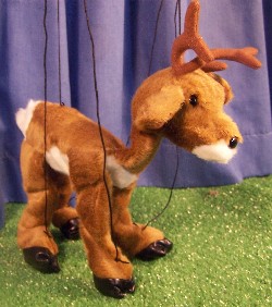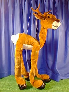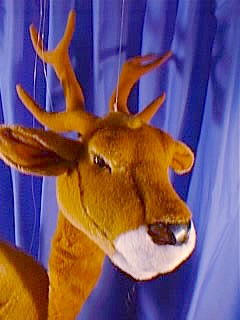SMALL ELK MARIONETTE (WB398) And here we have the "pint-size" version of the Large Elk above. This cute little guy stands just 8 inches tall and his control is 16 inches from the floor. Just rock the control from side to side to make him walk. |