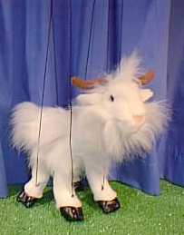 LARGE GOAT MARIONETTES Perfect for your marionette production of "Billy Goat's Gruff", or "The Little Goatherd", or "The Three Little Goats" or "Mary Had a Little Goat" or... well, you get the idea. These 38 inch tall String Puppets come in Winter White (temp. out of stock) and Foggy Gray (temp. out of stock). |