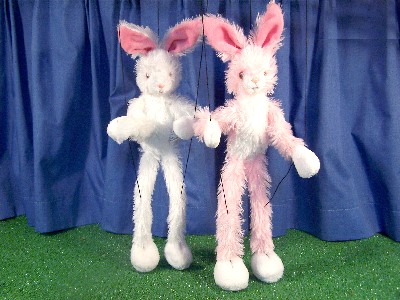These two Small Rabbit Marionetes are about 17 inches tall (21 inches to the top of the control. They are available only in a pack of 2 which includes one white and one pink bunny.
